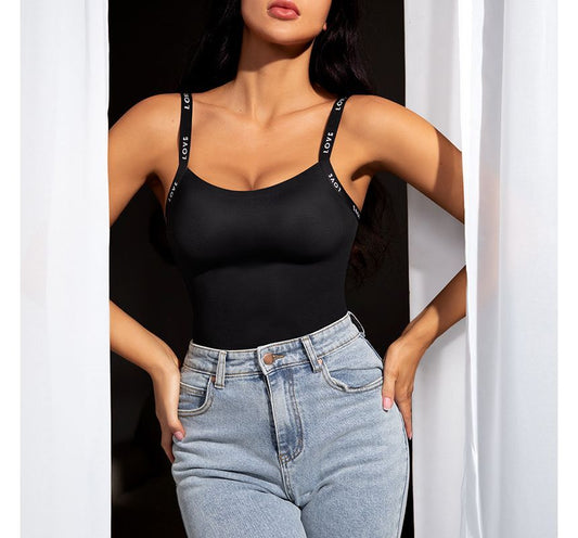 Spaghetti Strap Lettering Print Bodysuit ZJ3