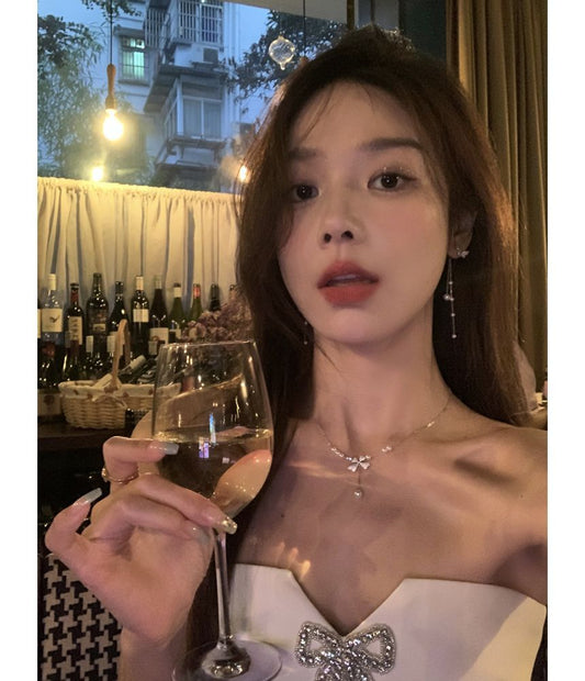 Cute Heart Bowknot Diamond Bracelet Heart Necklace - Heartzcore
