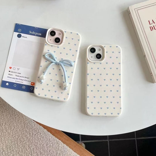 Phone / Bow Faux Case Decoration Leather Set Adhesive Heart