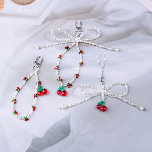 Cherry Faux Pearl Keyring / Phone Charm (Various Designs)