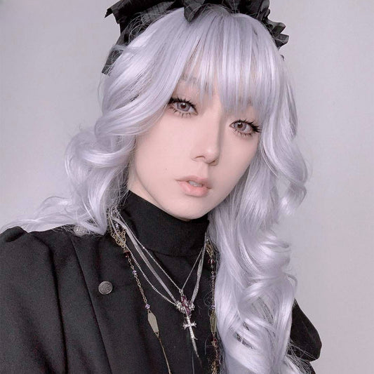 Lolita Blue Gray Wavy Long Curly Wig MK15443