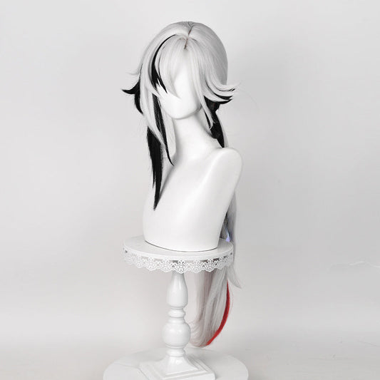 Genshin Impact Alerchino Silver Mix Black Red Cosplay Wig ON1030