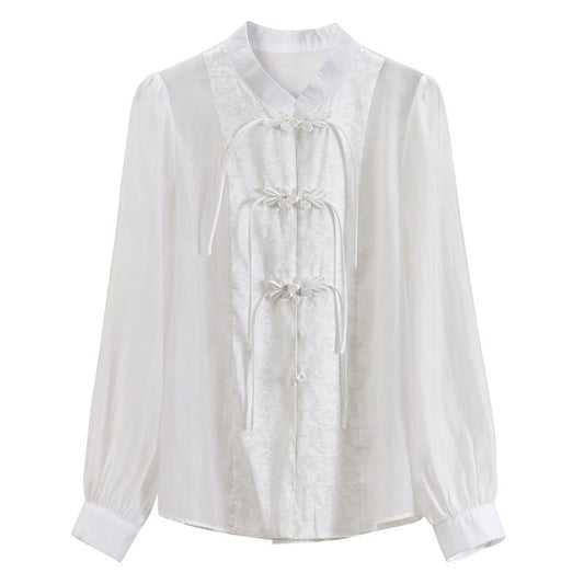 Elegant Stand-Up Collar Bow Loose Shirt
