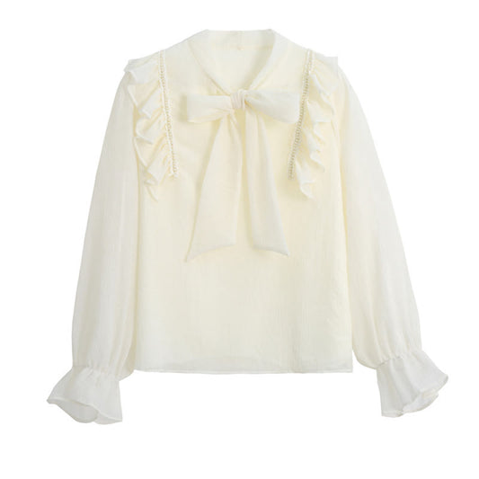 Elegant Bowknot Flouncing Chiffon Shirt