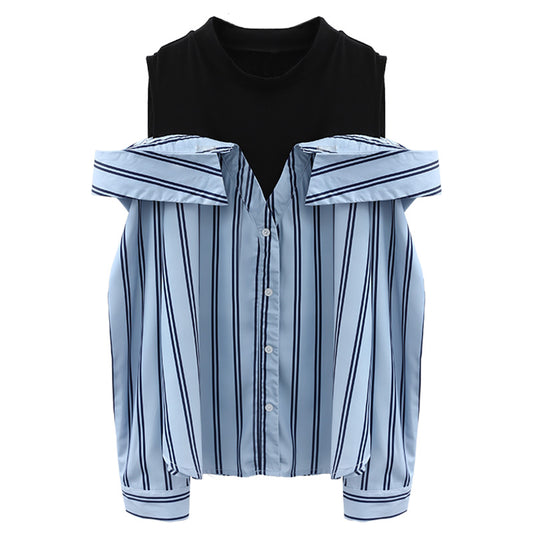 Fake Two Piece Striped Strapless Shirt