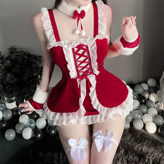Sexy Flounce Lace-up Slip Lingerie Dress Set
