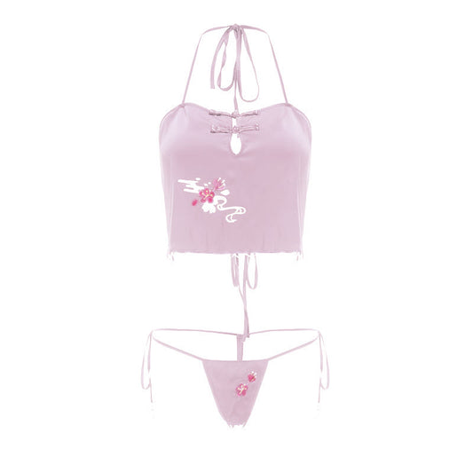 Vintage Fringed Lace Up Flower Embroidery Hanfu Lingerie