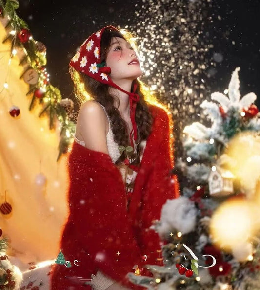 Velvet Bell Fuzzy Ball Bikini Lingerie Set