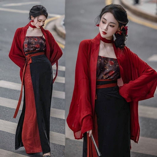 Cardigan Embroidery Bamboo Skirt Pieces Cami Top Vintage Three