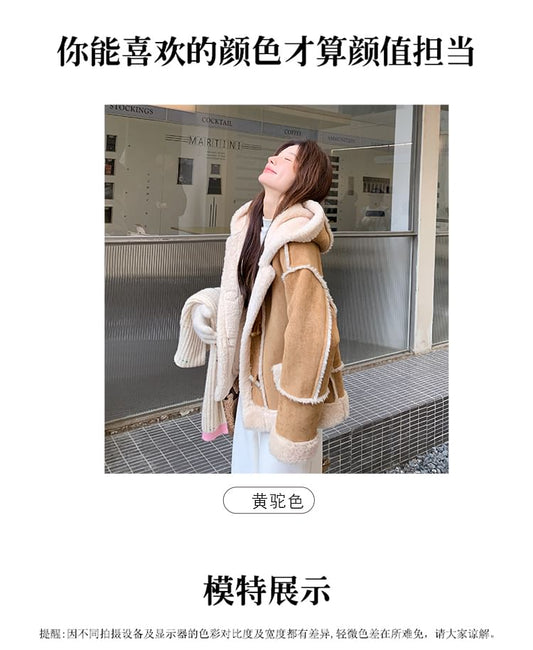 Plain Hood Zip Teddy Jacket