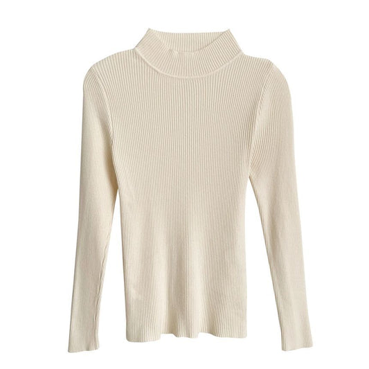 Mock Two-Piece Long-Sleeve Cold Shoulder Plain Knit Top