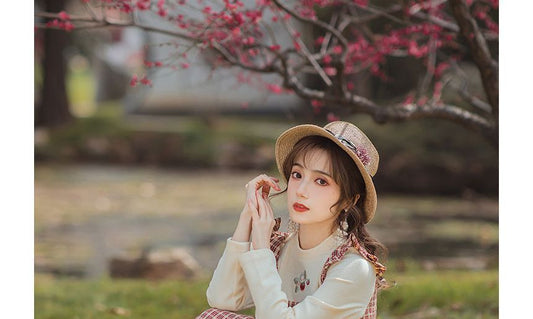 Mock Two-Piece Long-Sleeve Plaid Hem Top