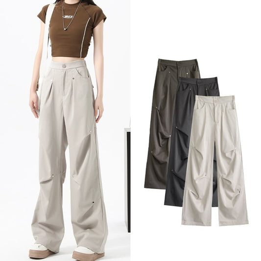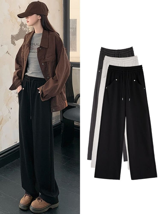 Stud Applique Plain High Rise Drawstring Wide Leg Sweatpants