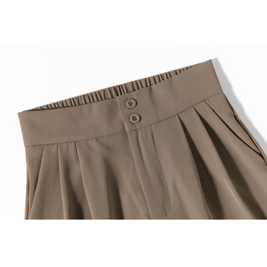 Summer Maxi Elastic Skirts Pockets Waist Blue