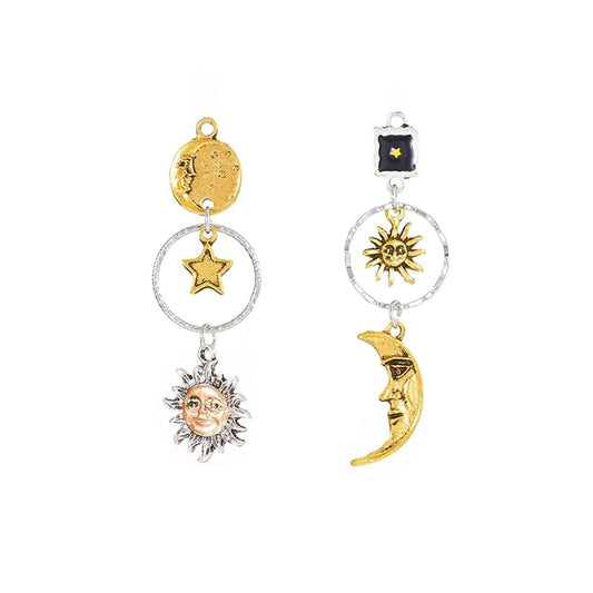 Sun Moon Asymmetrical Drop Earring / Clip-On Earring