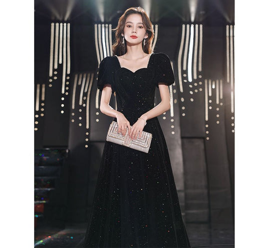 A-Line Gown Evening Puff-Sleeve Sequin Patterned