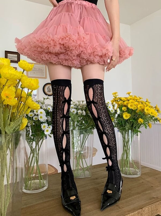 Lolita-Strumpfhose mit Schleife und Spitze