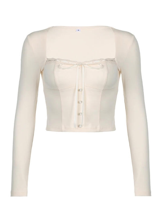 Top mit eckigem Kragen und Spitzenbesatz