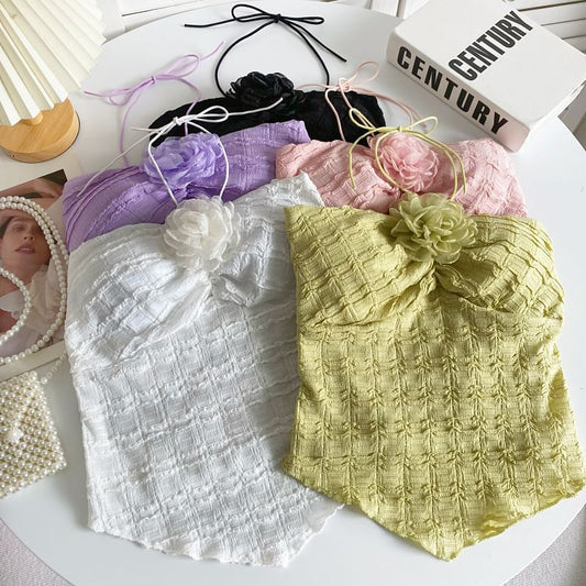 Neckholder-Crop-Top mit Blumen-Akzent und Unifarben