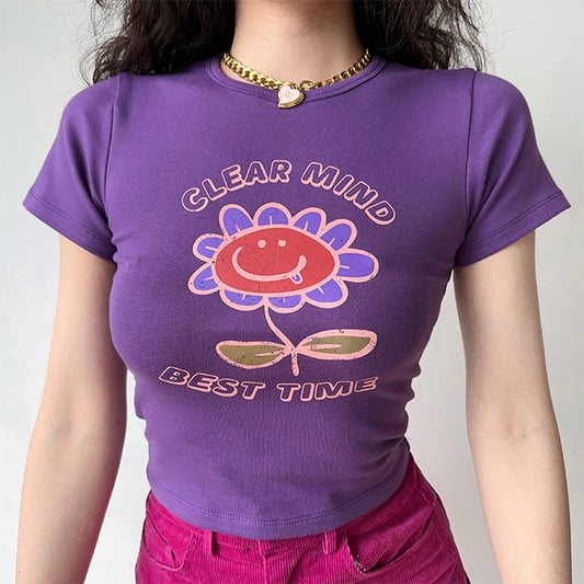 Lässiges geripptes Crop-Top im Y2K-Stil