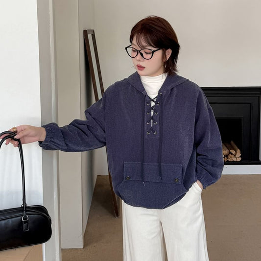 Plus Size Mock Two-Piece Two Tone Drawstring Hoodie