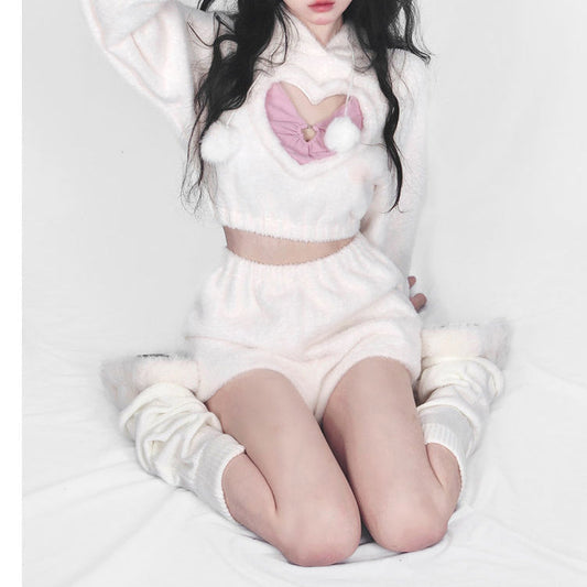 AusverkauftSüßes weißes Hoodie-Zweiteiler-Set mit Herz