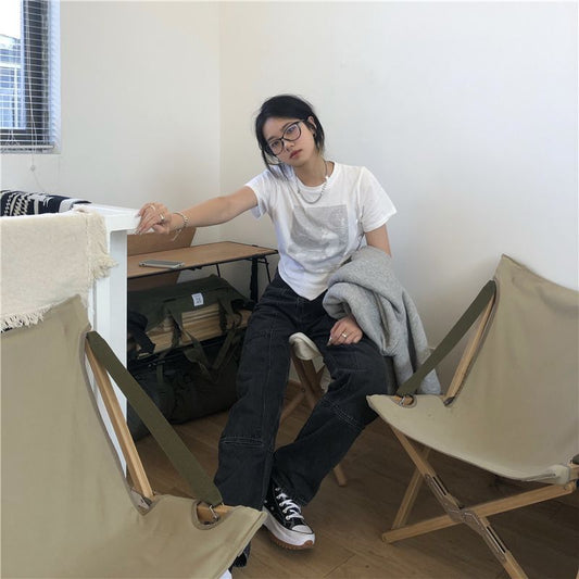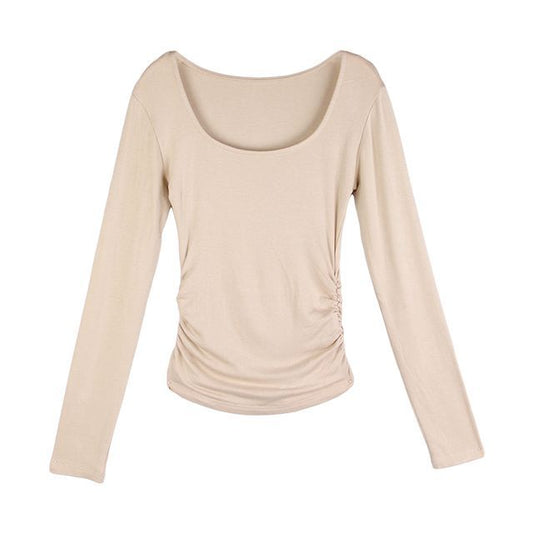 Einfarbiges T-Shirt mit Ellenbogenärmeln / Transparentes Oberteil mit langen Ärmeln MK19202