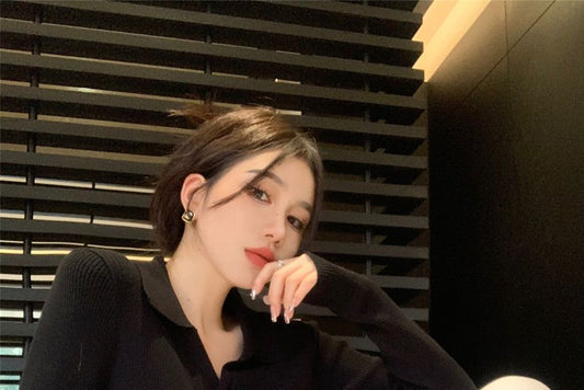 Langärmliges, kurzes Stricktop mit Kragen und Verschluss OE34