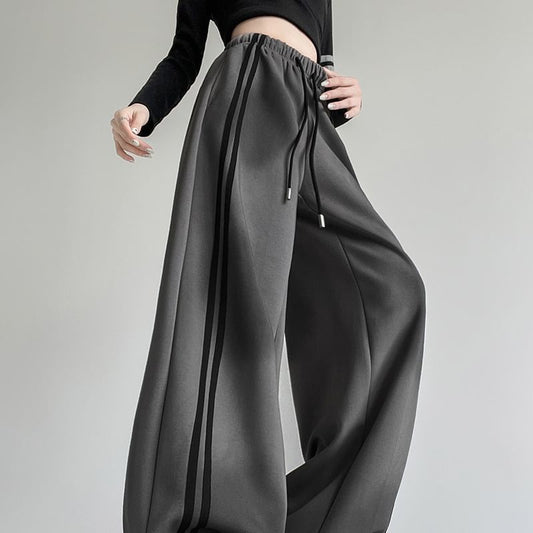 High Waist Striped Slit Fleece-Lined Flared Sweatpants