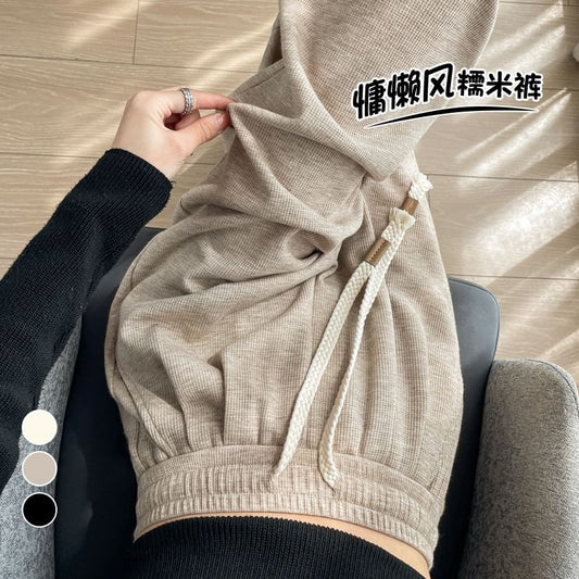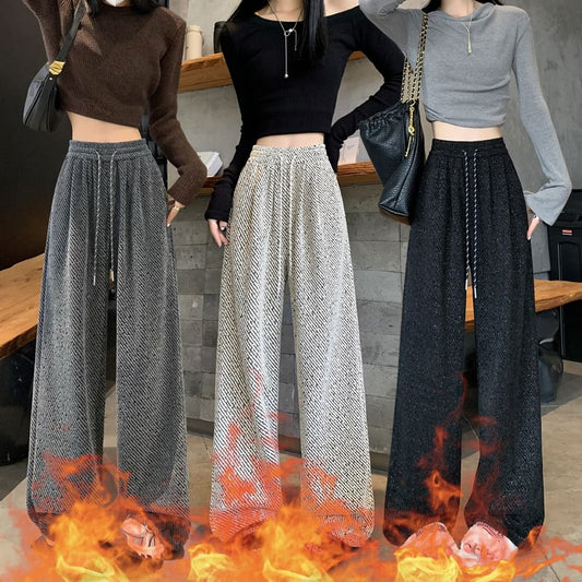 Drawstring Waist Patterned Fleece-Lined Wide Leg Pants