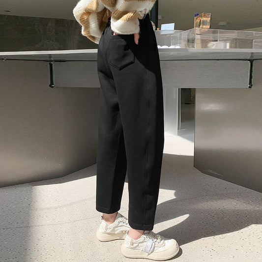 High Rise Plain Pleated Fleece-Lined Corduroy Loose Fit Pants