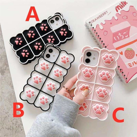 Schwarz/Weiß/Rosa, weiche, matschige Handyhülle mit Katzenpfoten, MK16495