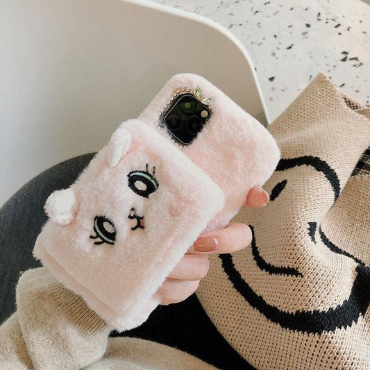 Iphone-Handyhülle mit Katzenstickerei, pelziges Handgelenk, MK15211