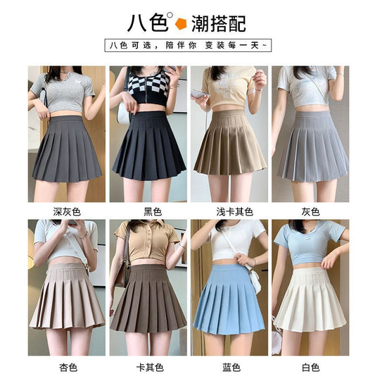 Set: Kurzer, schlichter Kapuzenpullover mit Reißverschluss + gestufter Minirock in A-Linie mit Kordelzug in der Taille