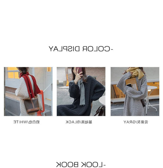 Long-Sleeve Turtleneck Plain Midi Sweater Dress