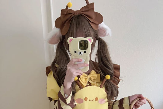 Short-Sleeve Bow Frill Trim Blouse / Bee Print A-Line Overall Dress / Jumper Shorts / Arm Sleeves / Bow / Underskirt / Headband / Set