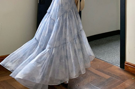 Spaghetti Strap Print Cutout Maxi A-Line Dress