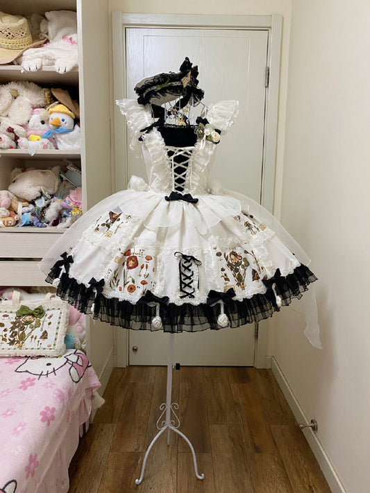 Perfektes weißes und schwarzes Blumen-Lolita-Kleid ON816