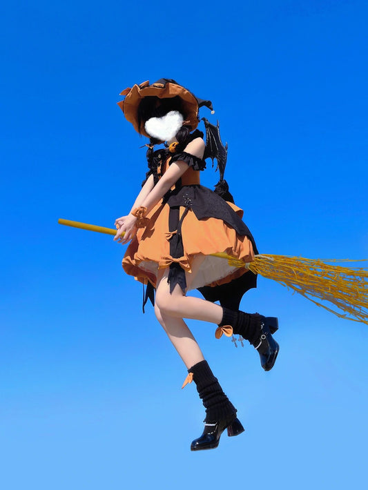 Schwarz-orangefarbenes Halloween-Hexe-süßes Kürbis-Lolita-Kleid ON823