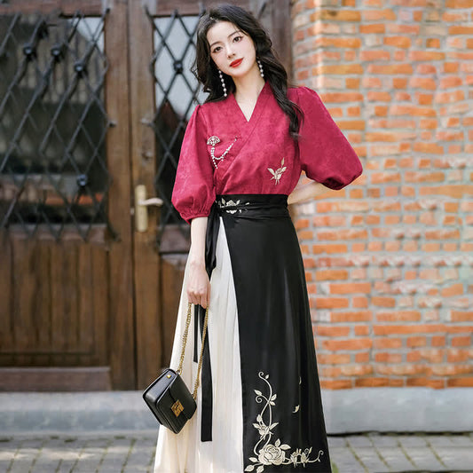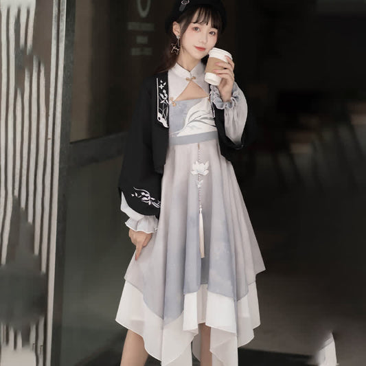 Vintage Hanfu Blumen Cardigan Stickerei Unterkleid