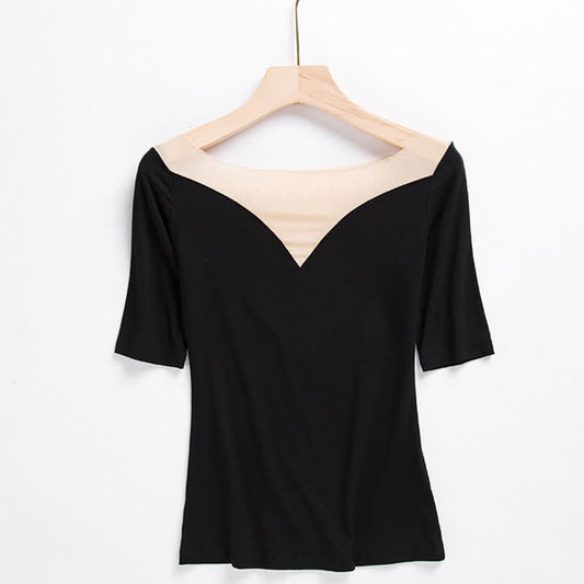 Vintage Mesh Spilce T-Shirt Fließender Doppelrock