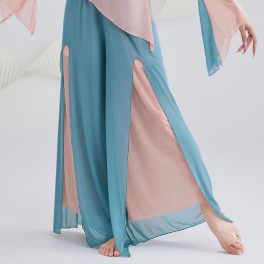 Vintage Colorblock-Hemd mit ausgestellten Ärmeln, geschlitzte Hose mit weitem Bein