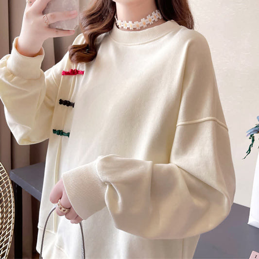 Lockeres Sweatshirtkleid mit Vintage-Blumenschnalle und Farbblock