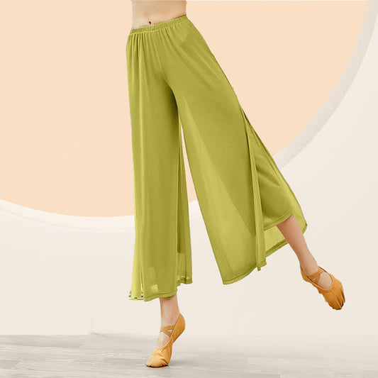 Fließende Vintage-Freizeithose mit weitem Bein und Schlitz