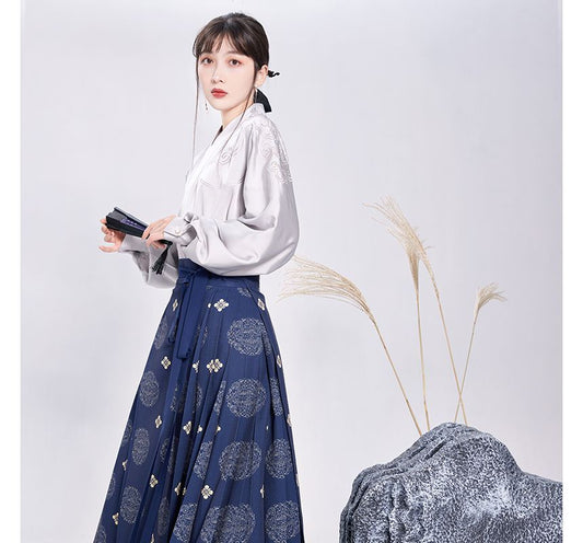 Long-Sleeve V-Neck Floral Embroidered Hanfu Top / Plain Top / High Waist Midi A-Line Skirt / Camisole / Shawl / Waist Skirt / Braid / Set