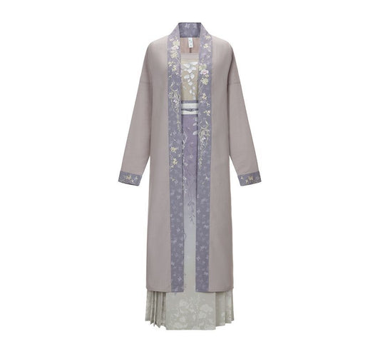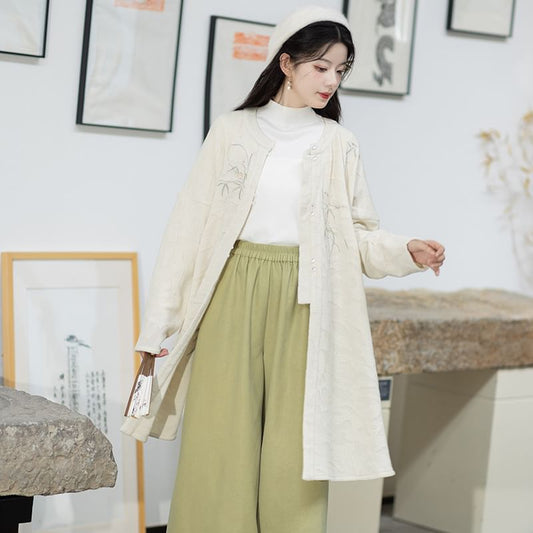 Hanfu Flower Open Front Jacket / Wide Leg Pants / Set