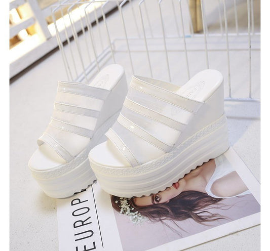 Fringed Trim Rhinestone Buckled Platform Slide Sandals