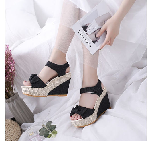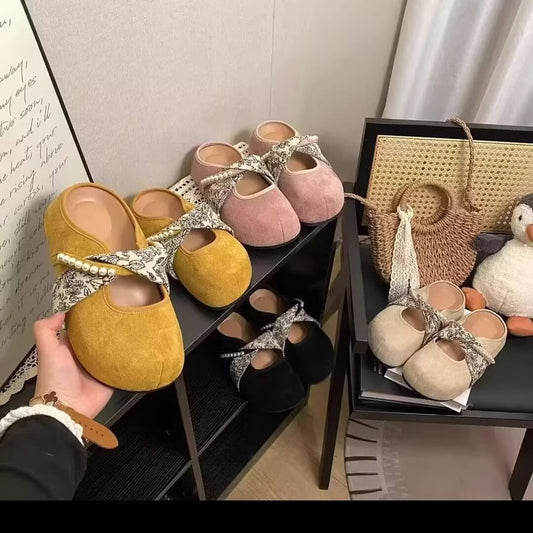 Hidden Wedge Round Toe Bow Satin Mary Jane Mules