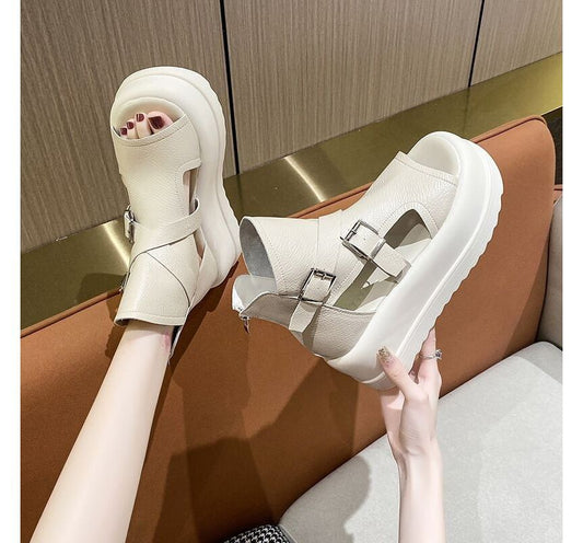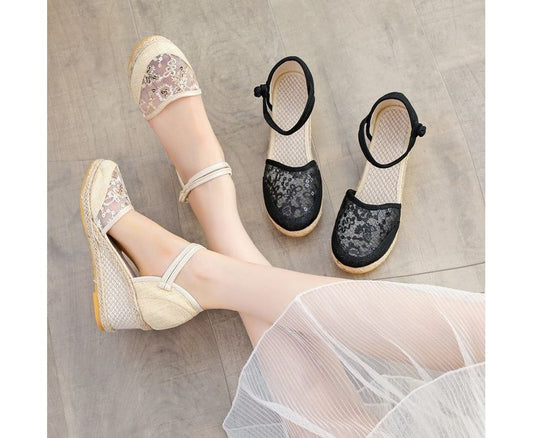 Wedge Heel Pointed Toe Genuine Leather Slingback Sandals