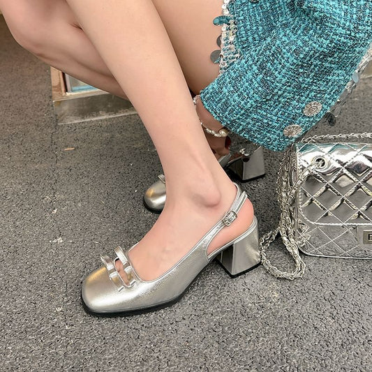 Square Toe Cross Strap Chunky Heel Mary Jane Pumps